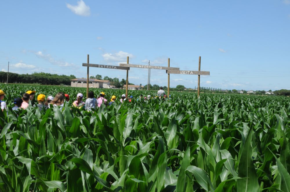 Dopo questa prima parte di didattica “in aula”, viene effettuata una visita in campo, in cui è possibile “toccare con mano” la piantagione, immergendosi all’interno e scoprendo le sue caratteristiche attraverso il gioco del labirinto. Sarà possibile raccogliere una pannocchia per ogni ospite che parteciperà, così da automunirsi ciascuno, del necessario per il laboratorio successivo.
